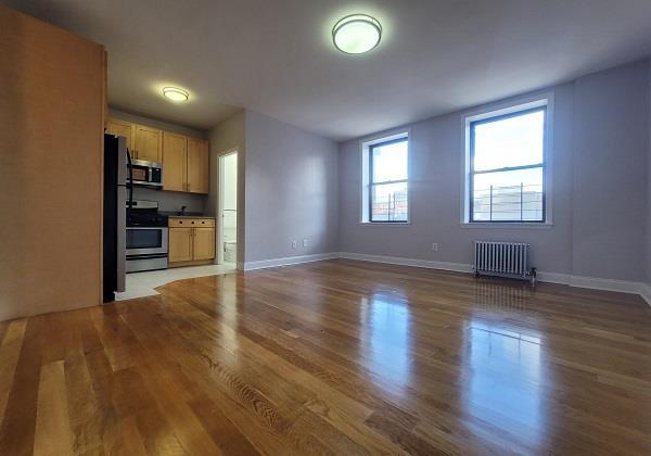 RENT STABILIZED! SUN FILLED! . This massive home features full renovated kitchen with stainless steel appliances, microwave and ceasarstone countertops. Sunny bedroom. Massive living room. Tons of closets. Gleaming hardwood floors. Clean finishes thru-out! Building features elevator and allows pets. Situated close to trains and right in front of beautiful Marcus Garvey park. Contact me 24/7 for a showing today!